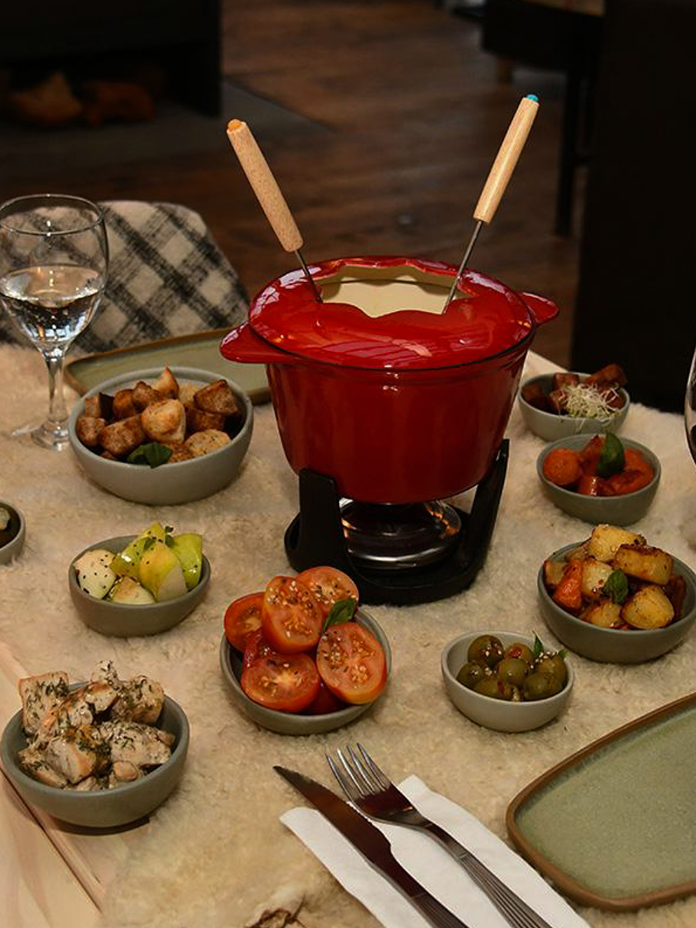 Cada vuelta del recorrido te conecta más con la naturaleza. Cuando llegás, te recibe La Cueva, un refugio cálido de alta montaña donde el fuego, la fondue y sabores autóctonos te esperan para terminar el día con alegría y relax. Mientras cae el sol sobre el cerro, compartís mesa con panes recién hechos, chocolates, dulces, cervezas artesanales y una fondue irresistible para vivir con todos los sentidos.